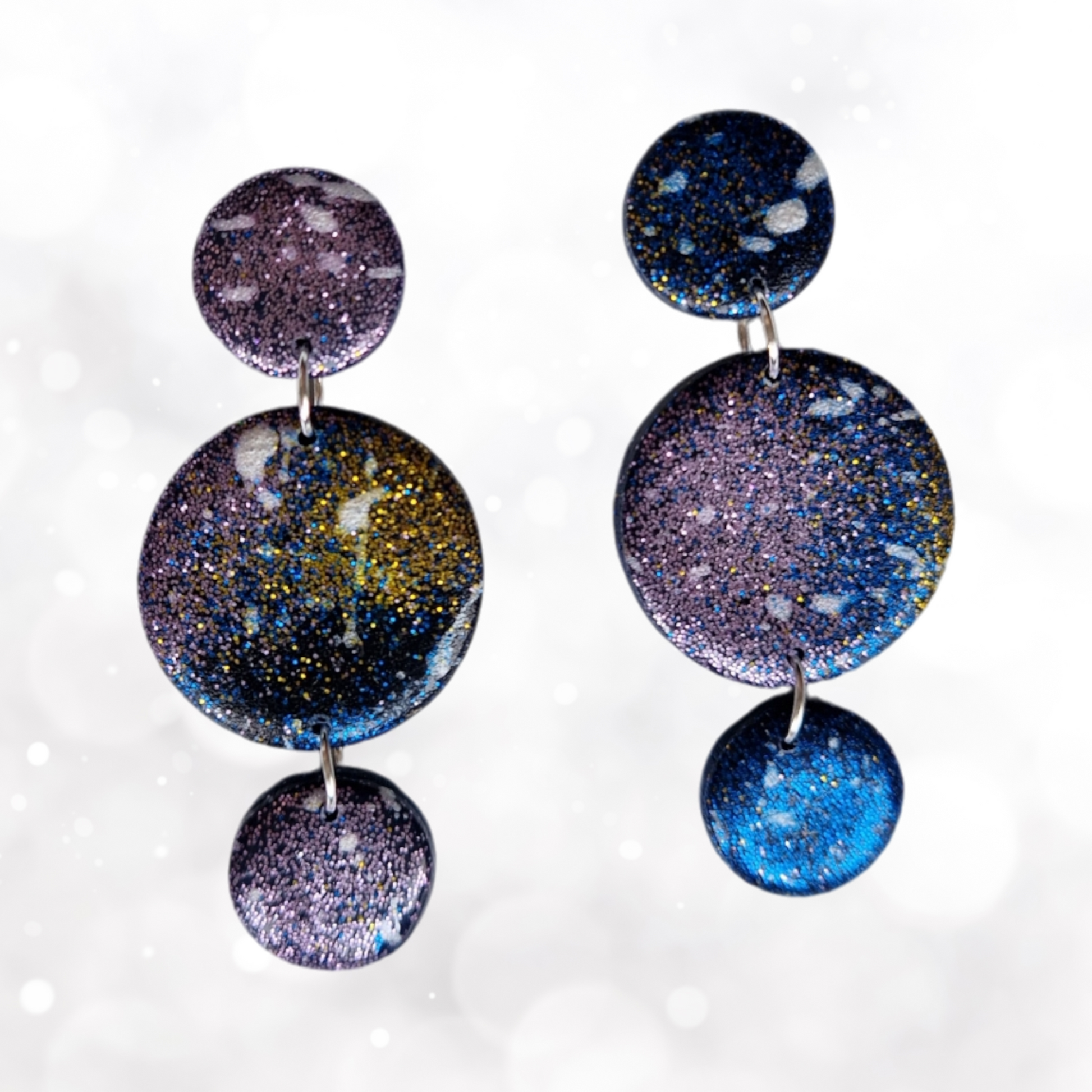 Galaxy-malliston korut ovat näyttäviä, kevyitä ja ainutlaatuisia. Materiaaleina polymeerimassa, peiliakryyli ja lasihelmet.