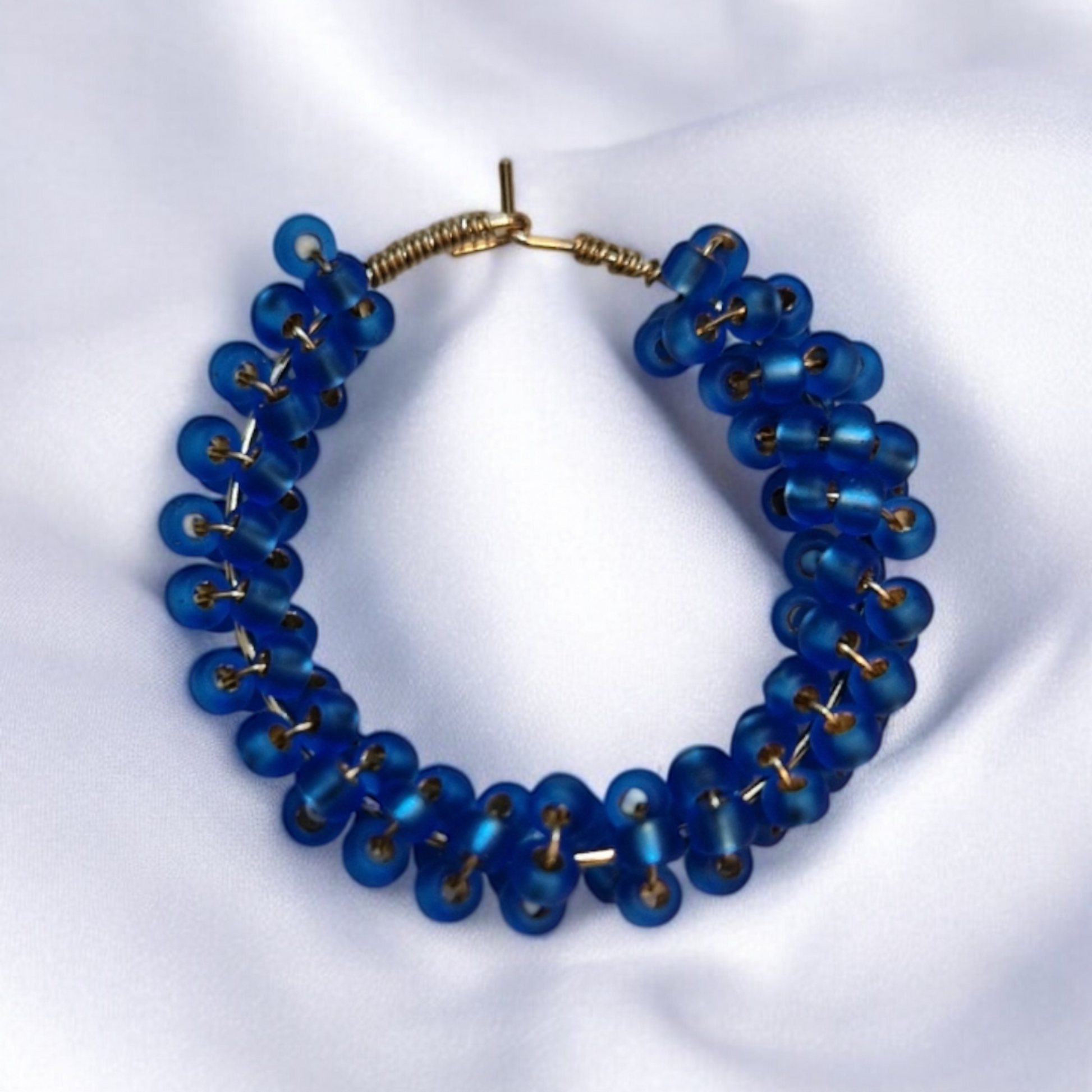Materiaaleina japanilaiset laadukkaat lasihelmet, kirurginteräs ja helmilanka.